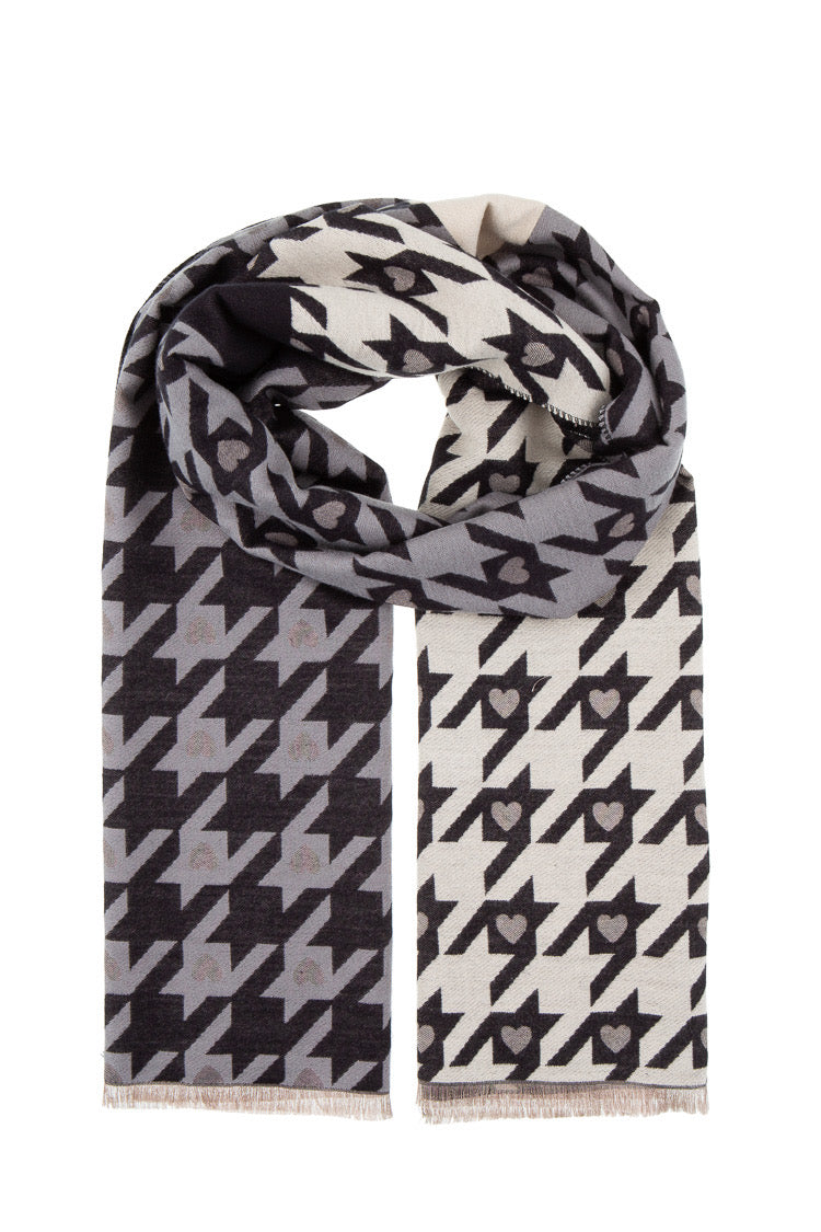 Schal mit Hahnentritt- und Herzmuster – Beige/Rosé
